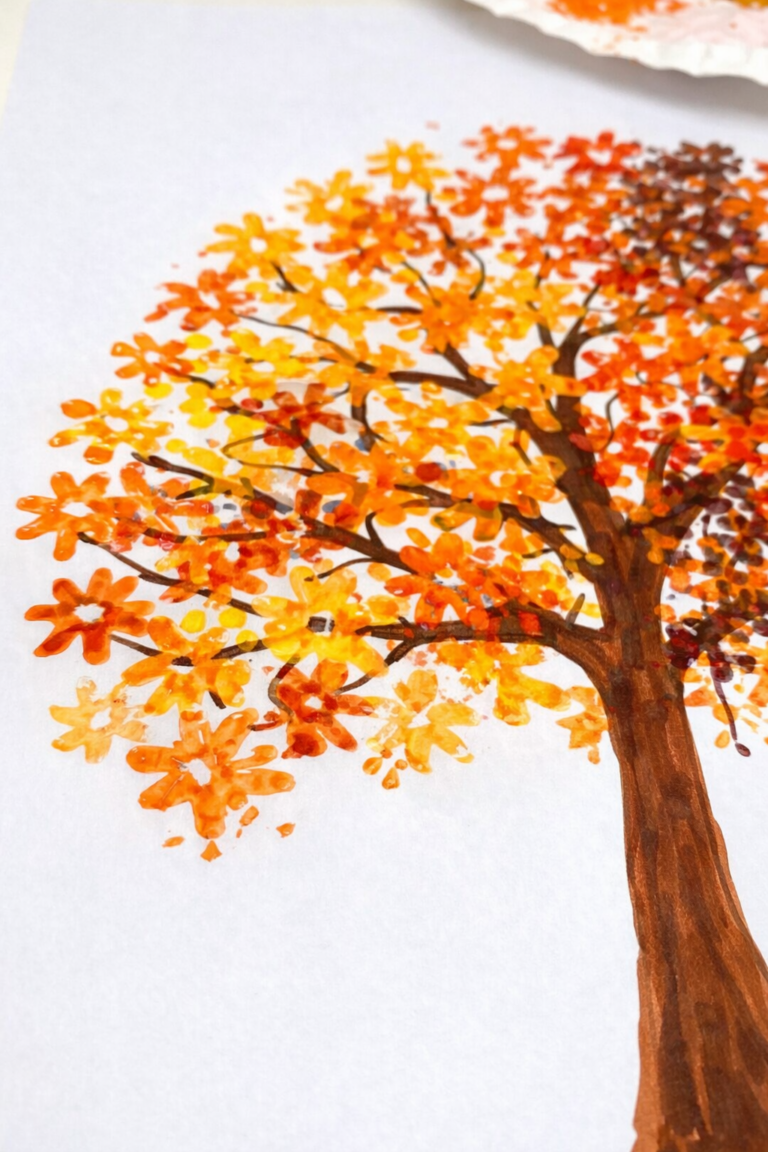 Herbstbaum stempeln mit Kindern – einfache Bastelidee für den Herbst