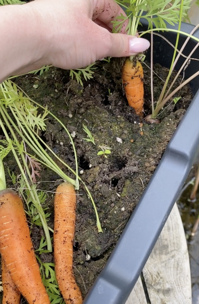 Hinweis: Längere Möhrensorten sind ebenfalls möglich – dann sollte der Kübel entsprechend tiefer sein. Wir greifen meist zu Snack-Möhren, weil sie einfach praktischer für unseren Alltag sind.