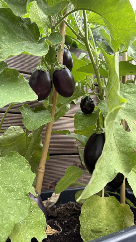 Auberginen lieben Wärme und fühlen sich im großen Kübel sehr wohl, besonders auf sonnigen Terrassen oder im Gewächshaus. Sie wachsen etwas langsamer, tragen aber zuverlässig bei guten Bedingungen.