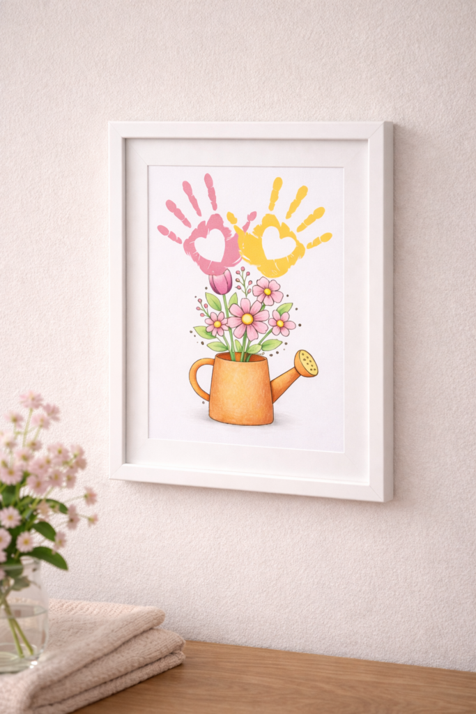 Diese Bastelidee ist nicht nur eine schöne Muttertag Geschenkidee, sondern lässt sich ganz flexibel auch für viele andere Anlässe nutzen. Gerade weil die Kinder das Bild individuell gestalten und beschriften können, passt es zu ganz unterschiedlichen Gelegenheiten.