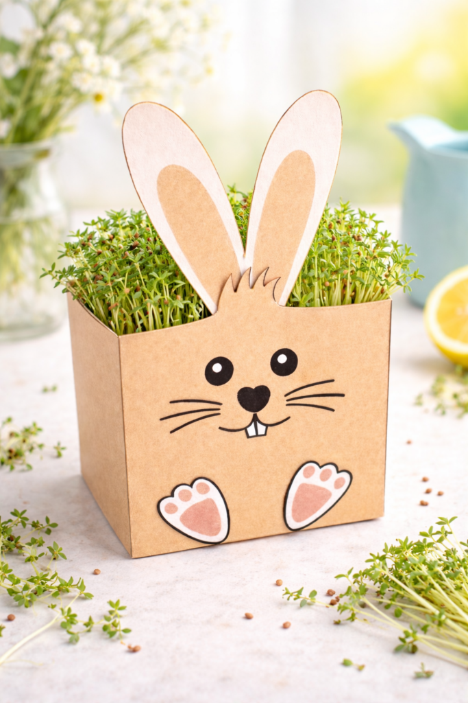 6. Kressehäschen – mit Bastelvorlage + Joghurtbecher