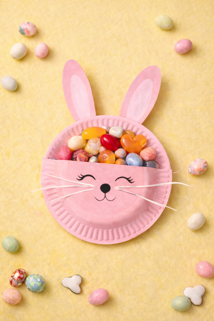 Diese Osterhasen aus Papptellern sind eine wunderbar einfache Bastelidee für Kinder. Sie lassen sich schnell umsetzen, brauchen kaum Material und eignen sich perfekt als kleines Osternest für Süßigkeiten, als fröhliche Deko oder einfach als kreative Beschäftigung in der Osterzeit. Gerade mit jüngeren Kindern macht diese Idee viel Spaß, weil sie leicht nachzumachen ist und viel Raum zum Gestalten lässt.